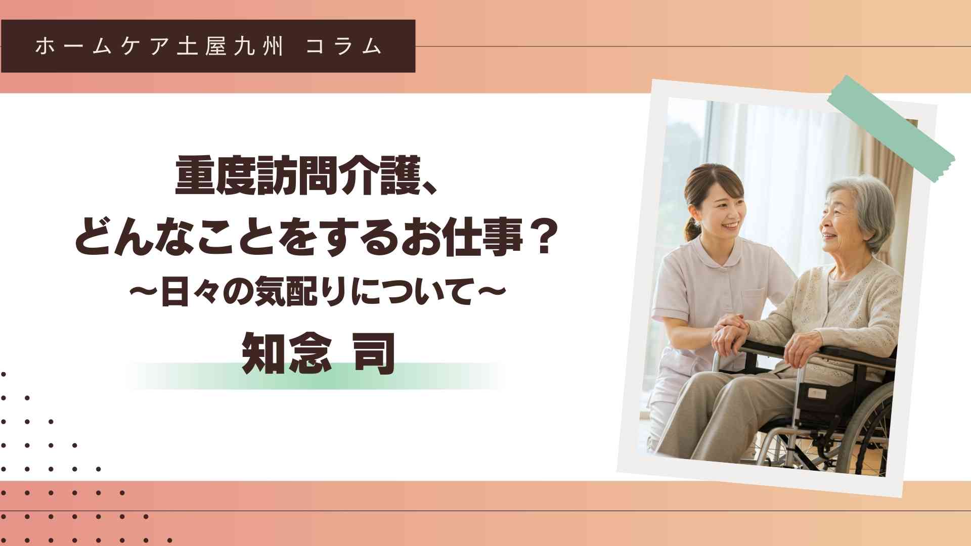 当時、面接官にこの仕事の魅力を聞いたときに、「ありがとうの温かみが違う。とても距離感の近い仕事だけにお互いの気持ちが寄り添う。『こんにちは』も『また来ますね』も、目線を合わせて利用者に触れて挨拶してみて。きっとわかるよ。」 と。