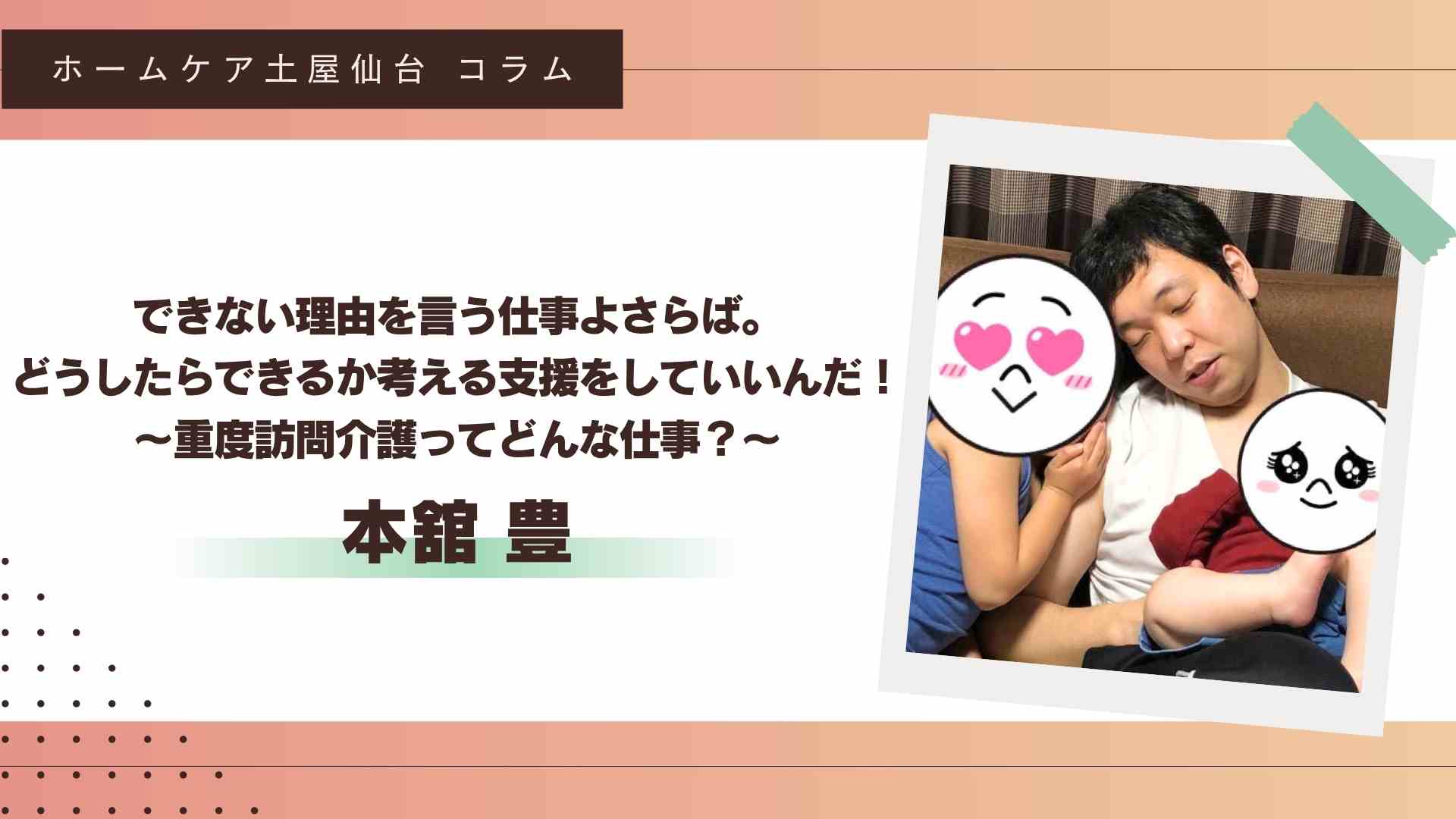 また重度訪問介護は2006年に現在の名称に改められて以降、徐々にクライアントの対象範囲が広がりつつあり、今後もさらに社会的な意義の大きな介護サービスになると予測されています。